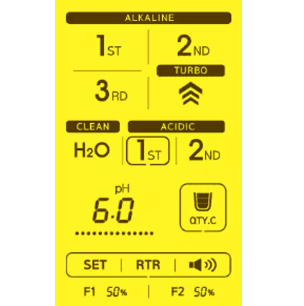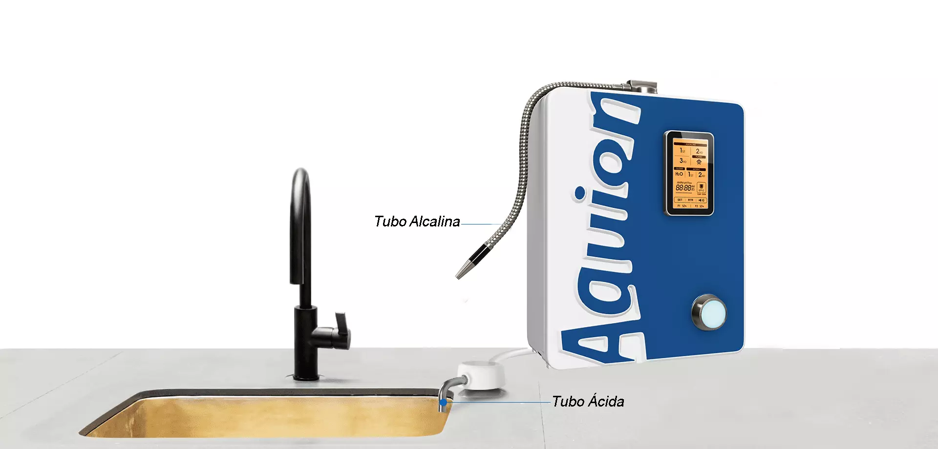 Água altamente alcalina/ácida não adequada para consumo, mas sim para limpeza, desinfeção e esterilização.