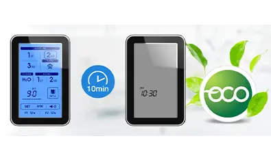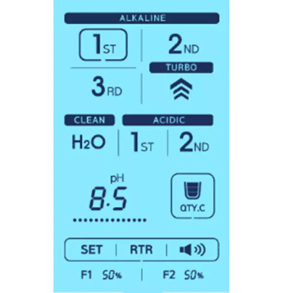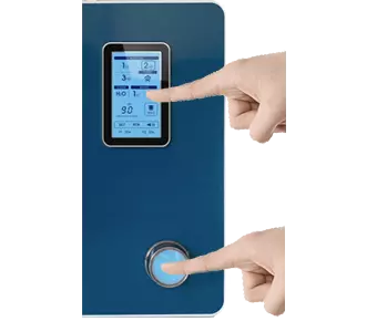 O ecrã LCD táctil retroiluminado fornece informações e opções de utilização de forma clara e intuitiva. Basta selecionar um dos ícones apresentados e a unidade será automaticamente activada e a água produzida.