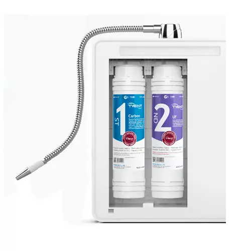O exclusivo sistema de 2 filtros produz água pura, removendo todas as substâncias nocivas presentes na água e preservando os minerais necessários ao nosso organismo.