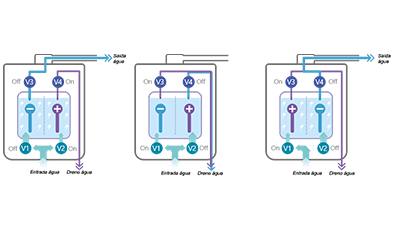 Caso seja interrompida a alimentação de água de rede, o equipamento pára imediatamente. Evitam-se assim danos na célula eletrolítica e na fonte de alimentação.